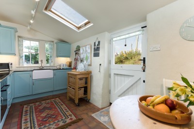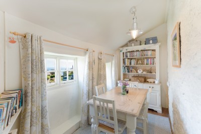 Sympathetic restoration has retained or restored original features such as the fireplace, wide wooden floorboards and sash windows. The cottage is well equipped, comfortably furnished and tastefully decorated using tranquil seaside colours and natural fabrics. Plentiful windows on three aspects ensure that Kittiwake is light and airy with excellent views over the valley to the sea. It’s cool in summer and cosy in winter, with a log burner in the sitting room and heaters in every room.