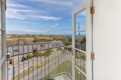 - French doors leading onto balcony with sea views